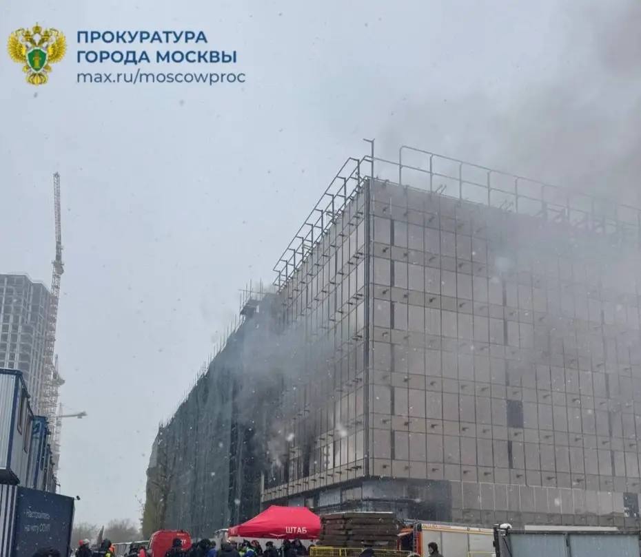 Пожару на стройке в районе Аэропорт присвоен максимальный — 5-й ранг сложности.