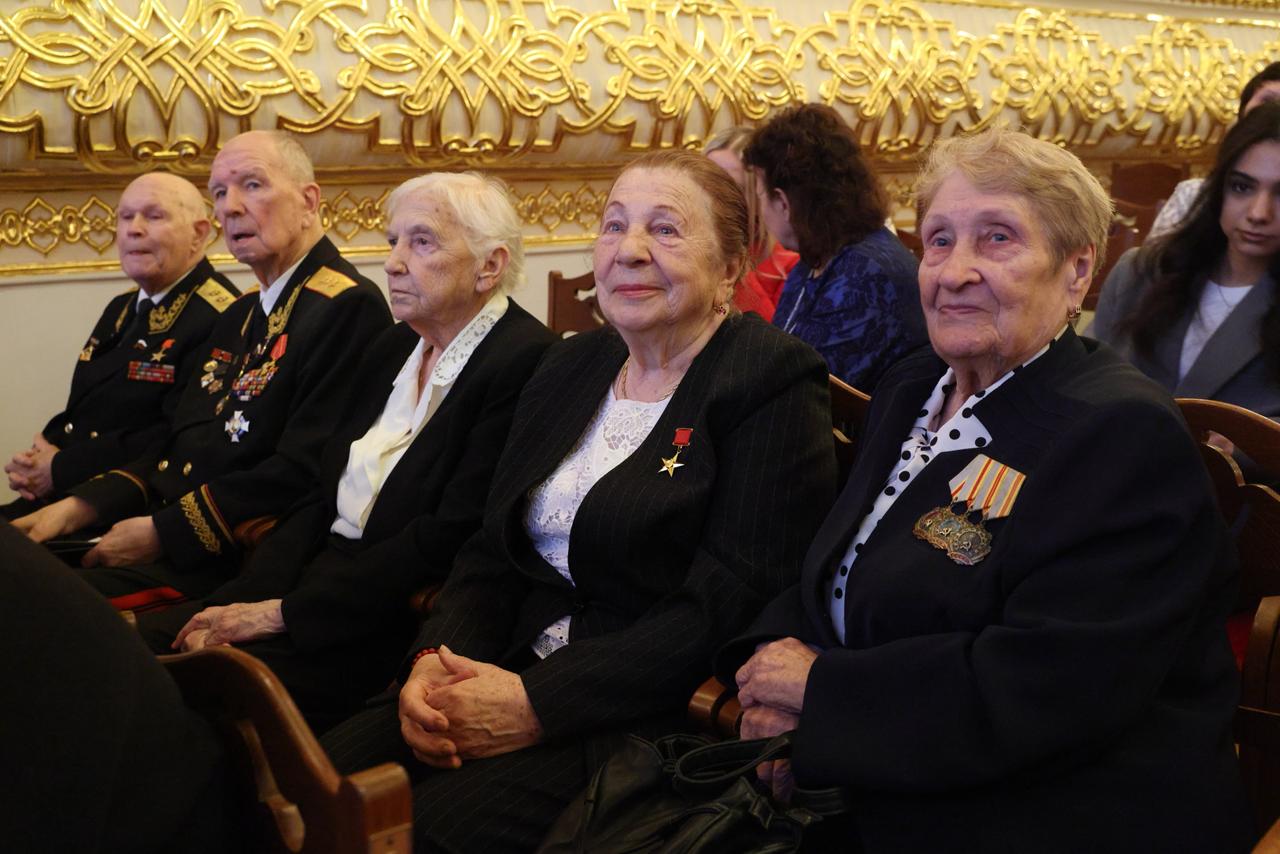 В зале – участники войны, Герои Советского Союза и России, ветераны боевых действий и военной службы, труженики тыла, участники СВО – защитники Отечества. Встреча проходит уже в 57-й раз по инициативе Совета Московского Дома ветеранов войн и Вооружённых сил – добрая и очень важная московская традиция.