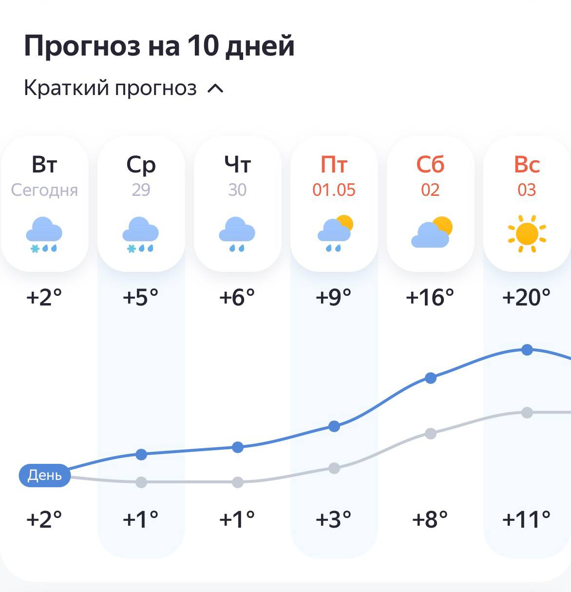 В субботу, 2 мая, в столице уже не будет осадков, воздух прогреется до +16 °C. В воскресенье будет солнечно.