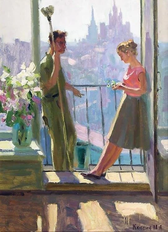 «На балконе», М. Костин, 1960 г.