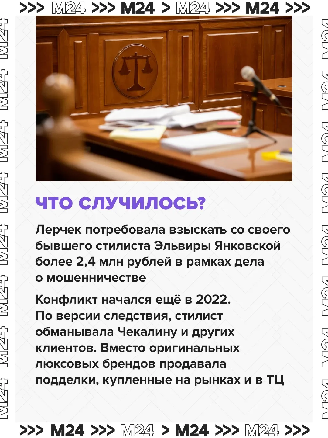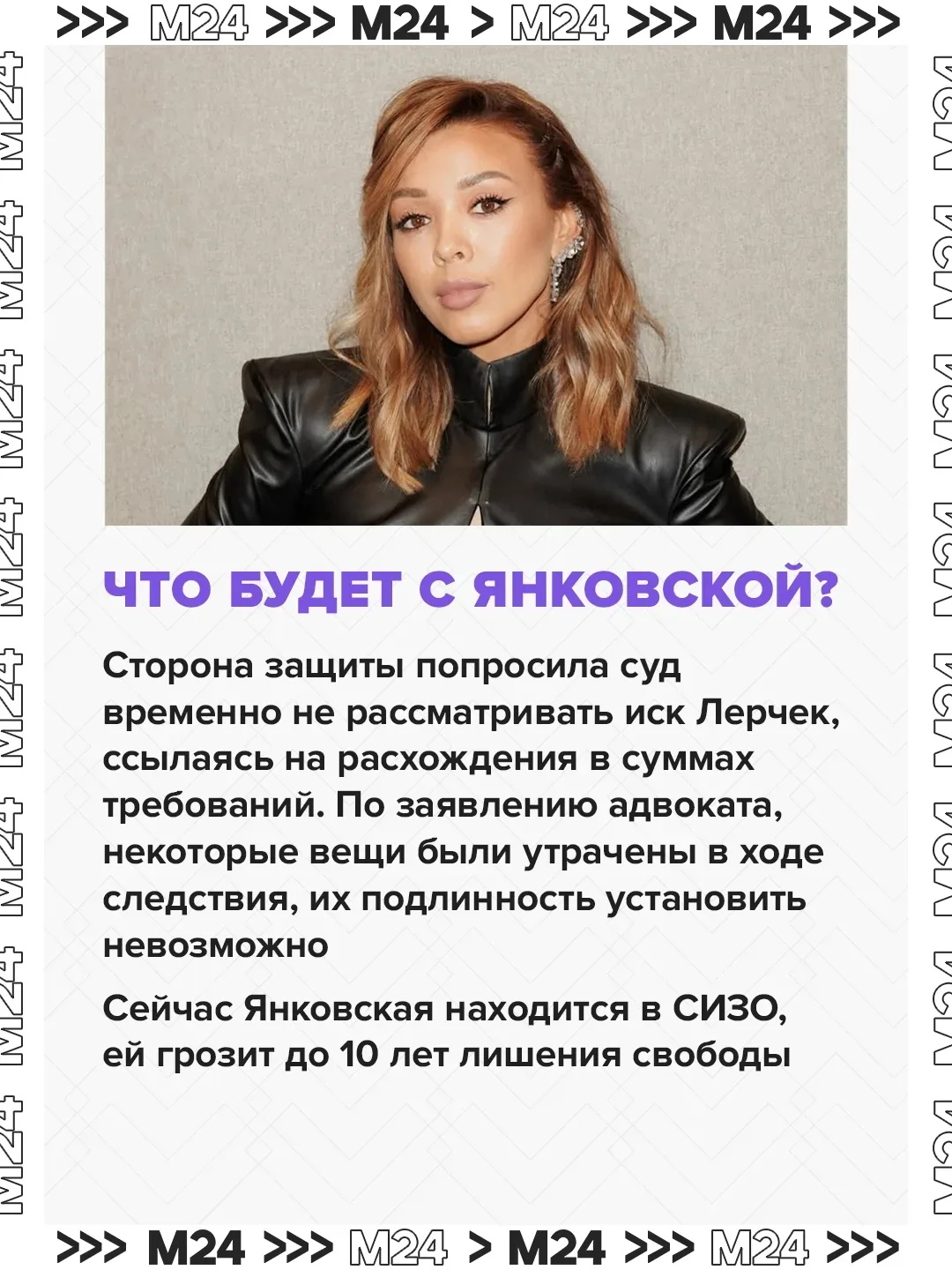 Лерчек требует 2,4 млн от экс-стилистки и обвиняет её в мошенничестве. Сама Эльвира Янковская сейчас в СИЗО, ей продлили срок ареста по уголовному делу.