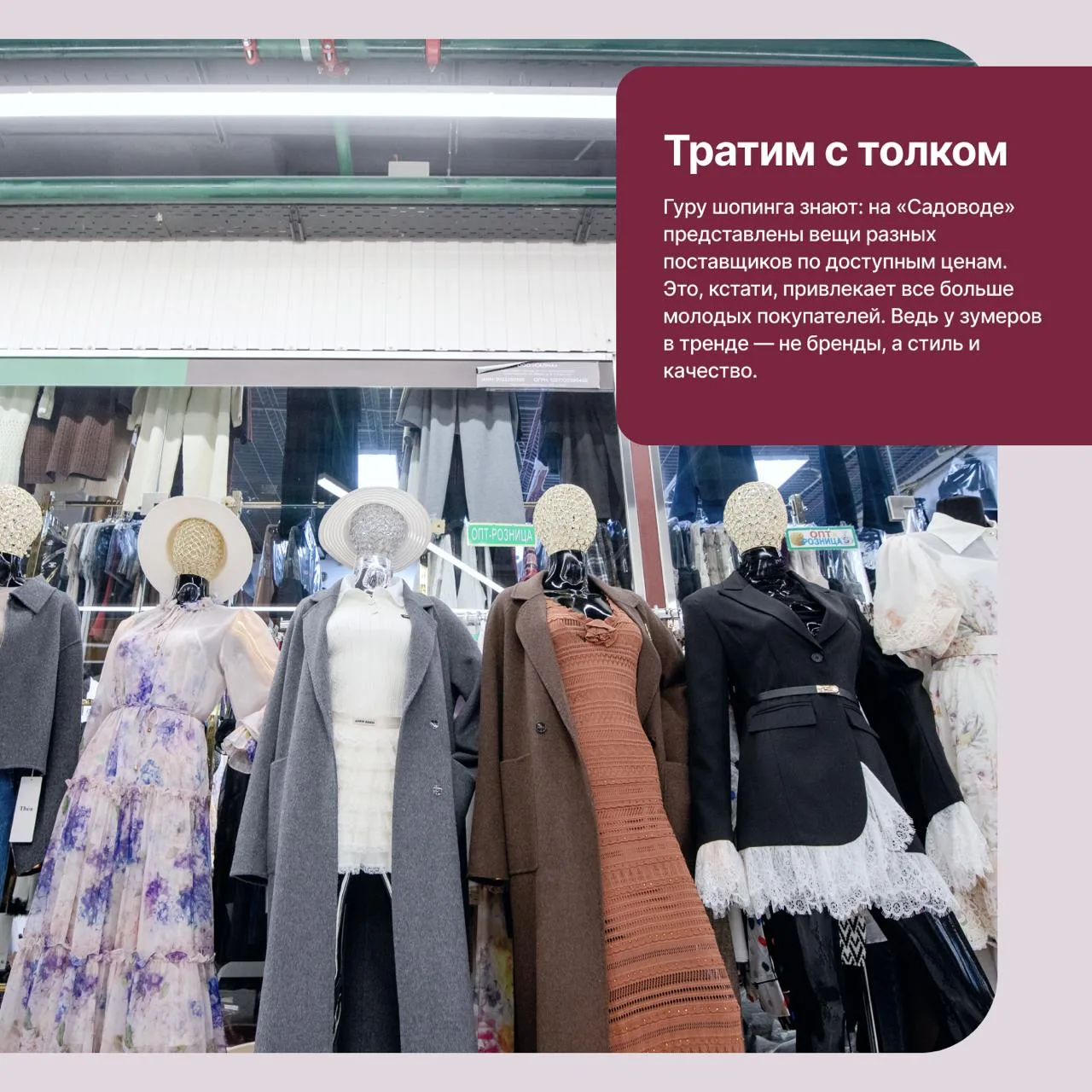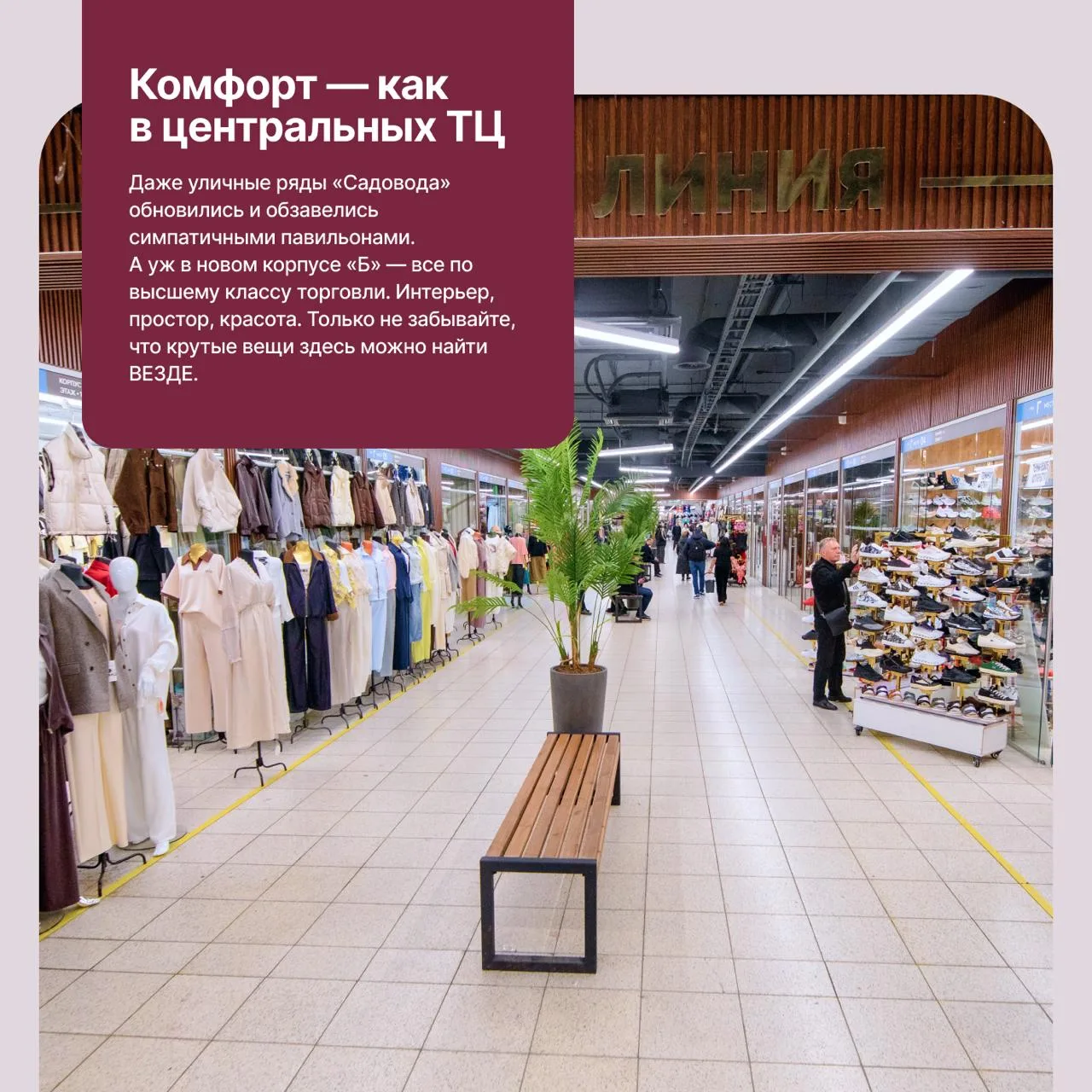 А если вы давно там не были — тем более стоит освежить впечатления: «Садовод» меняется на глазах. Когда-то классический рынок, сегодня он превратился в современный торговый кластер со всеми удобствами.