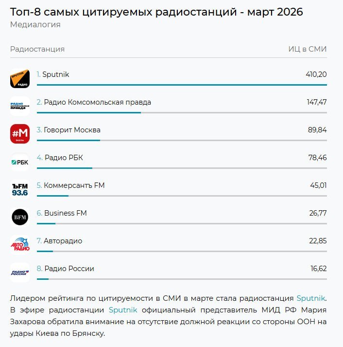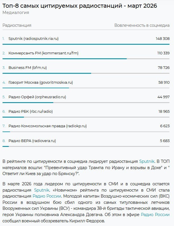 Данные приведены сервисом "Медиалогия".Подключайтесь на 91.2FM в Москве и 91.5FM в Петербурге, и смотрите нас в соцсетях — в Telegram, VK, RuTube и MAКС