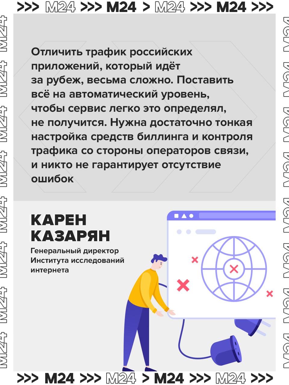 «Нужна достаточно тонкая настройка средств биллинга и контроля, <…> и никто не гарантирует отсутствие ошибок», — заявил генеральный директор Института исследований интернета Карен Казарян «Москве 24».