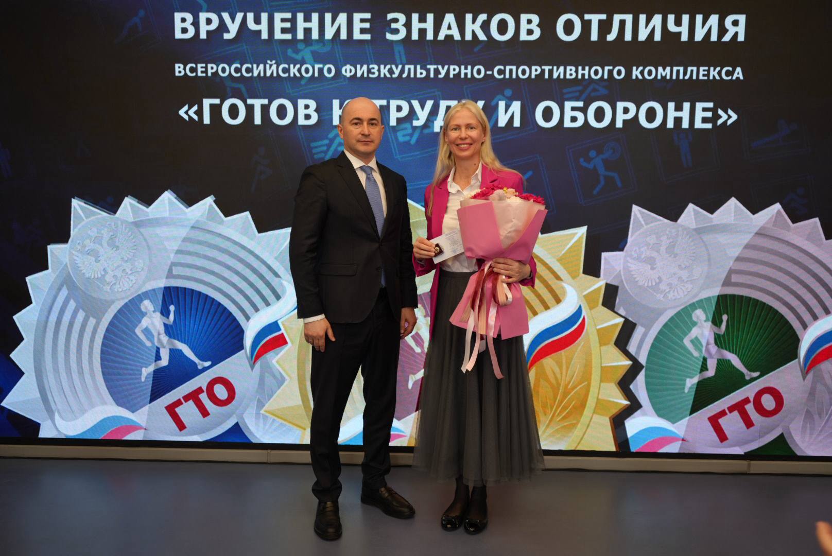 Заместитель директора Департамента физической культуры и спортаГеоргий Кабанов отметил лучших активистов знаками «Отличник физической культуры и спорта»
