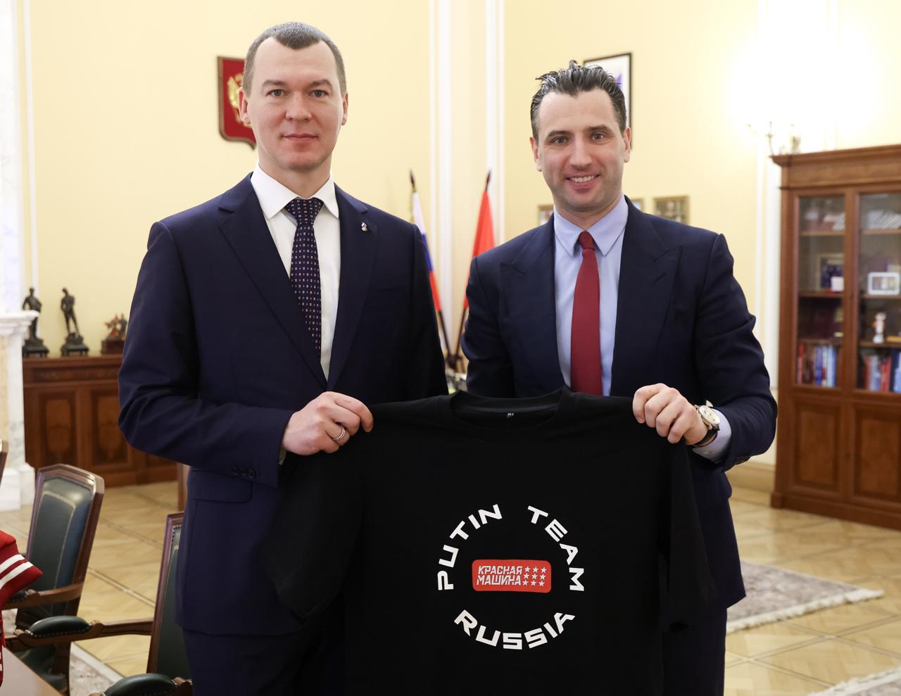 Провел встречу с первым вице-президентом Федерации хоккея России Романом Ротенбергом. Обсудили флагманский проект федерации «Красная машина», который развивается при его активном участии и сконцентрирован на постоянном поиске и подготовке молодых дарований. Ранее сегодня за высокие результаты наградил Романа почетным знаком «Отличник физической культуры и спорта».