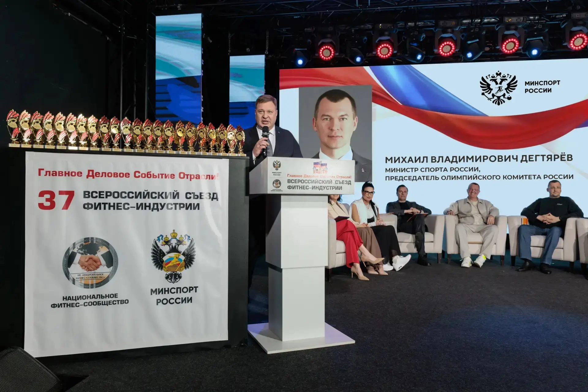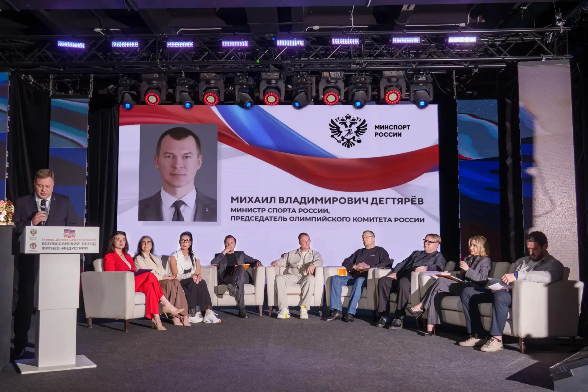 «Президент России Владимир Владимирович Путин подчеркивает, что фитнес-индустрия играет значимую роль в системе физического воспитания детей и молодежи, в формировании в обществе культуры активного, здорового образа жизни. Всероссийский съезд – площадка для выработки консолидированных решений, обмена опытом и определения векторов развития, соответствующих поставленным целям. Индустрия фитнеса помогает воплощать в жизнь стратегические задачи, делая спорт доступным и привлекательным для миллионов россиян», – приветственное слово Министра спорта, председателя Олимпийского комитета России Михаила Дегтярева зачитал заместитель директора Департамента физической культуры и массового спорта Минспорта России Георгий Кабанов